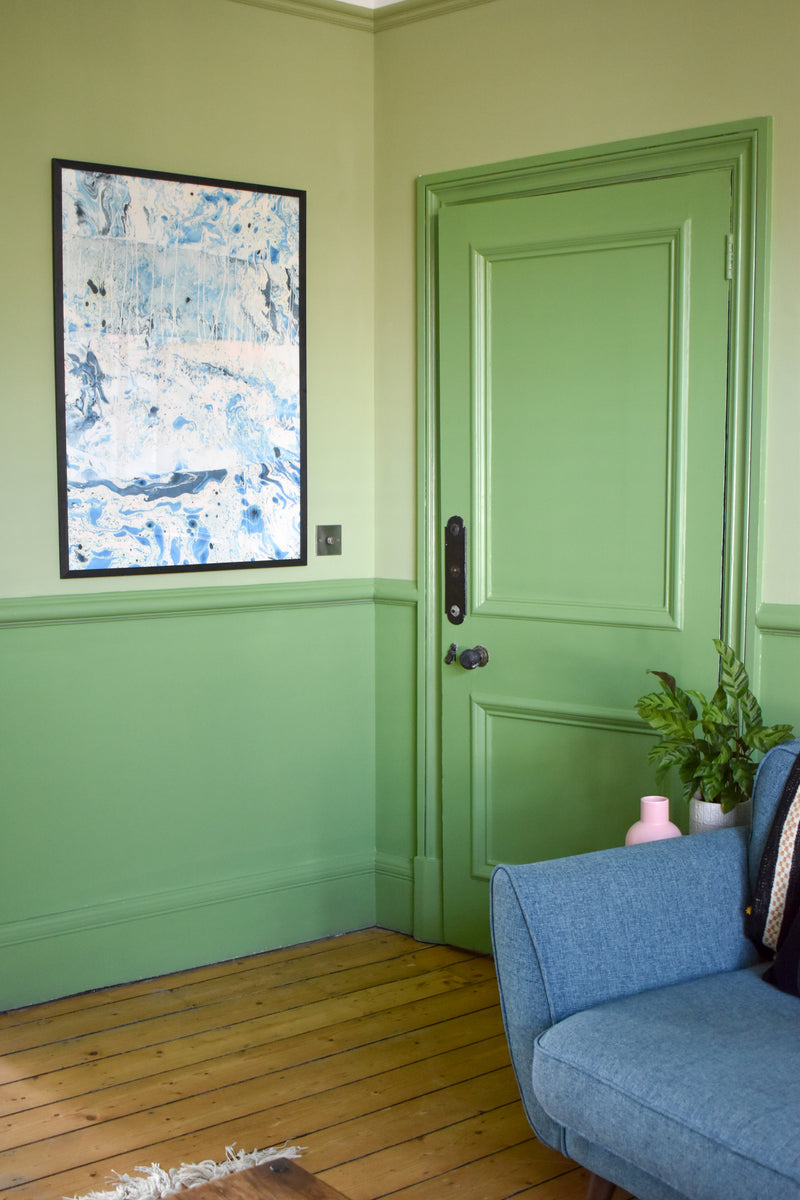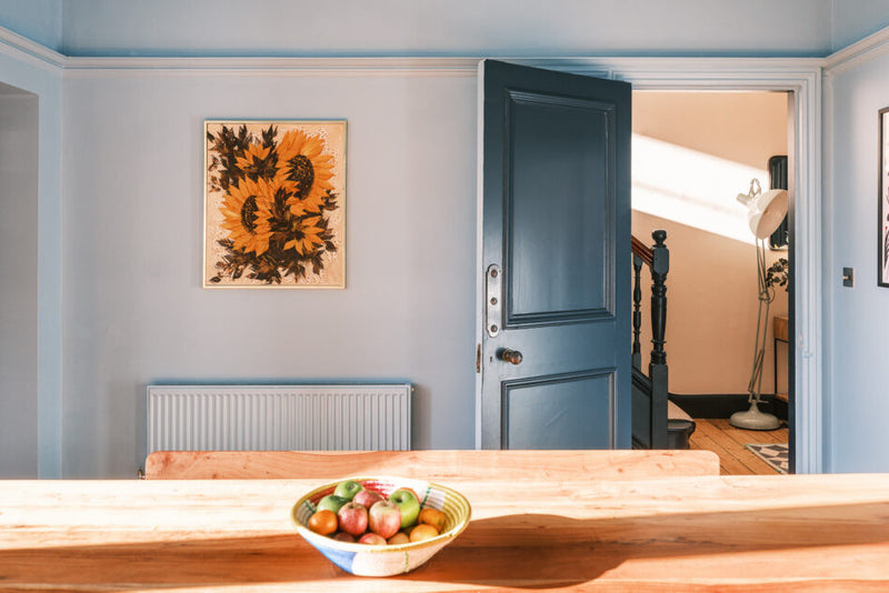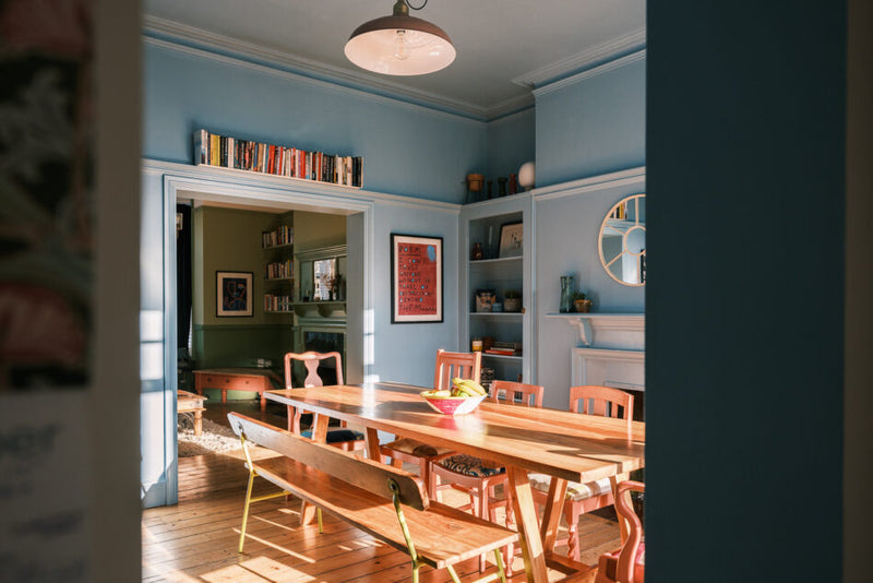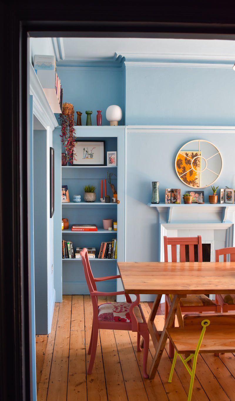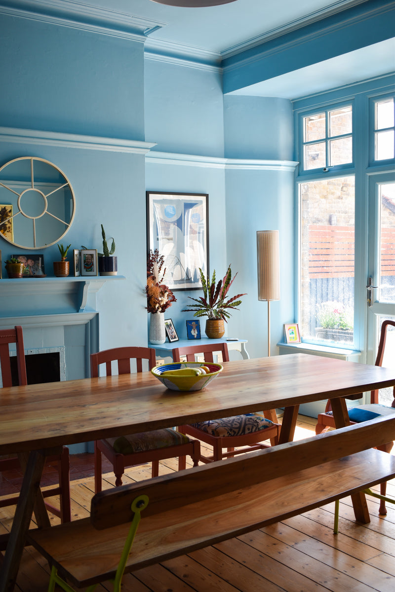 A handsome five-bedroom family home with its wonderful red brick Dutch gabled facade. A full colour consultancy for a the ground floor and entire hallway, creating an inspired and joyful scheme for this warming and cultured family.